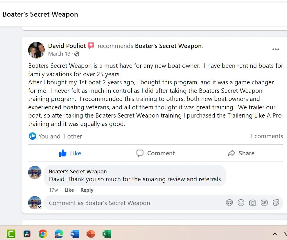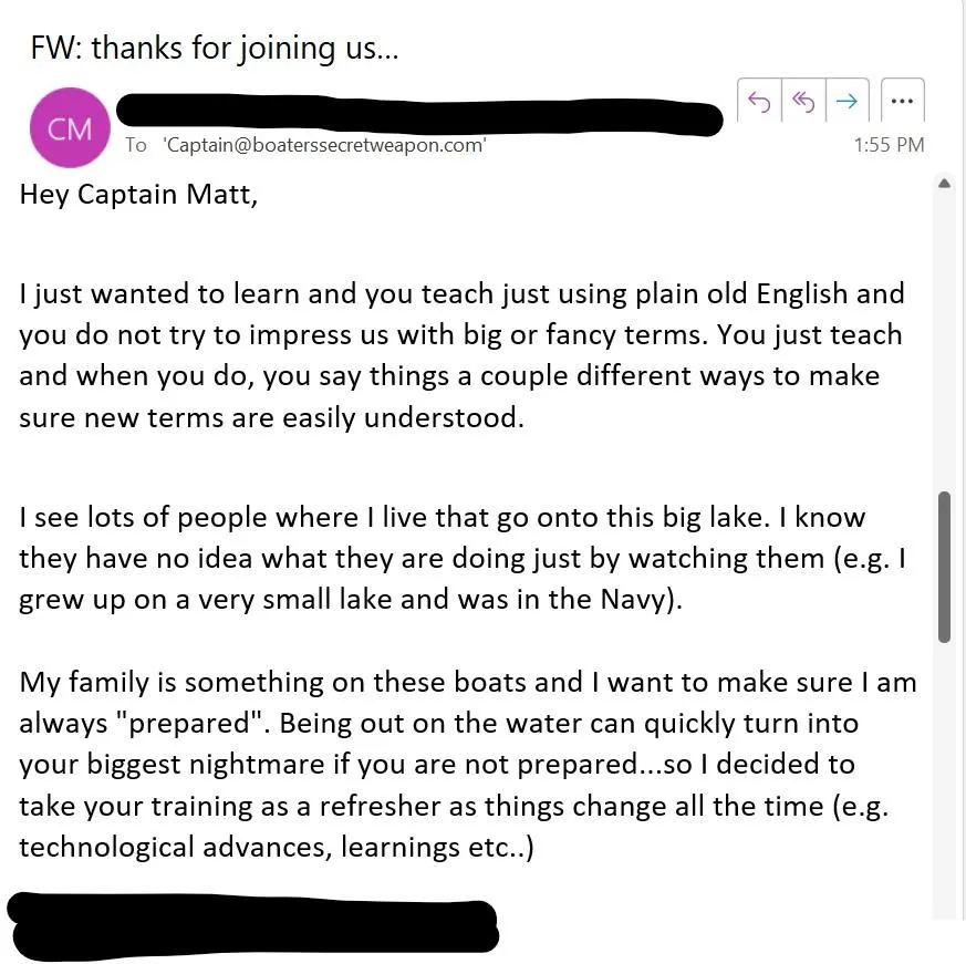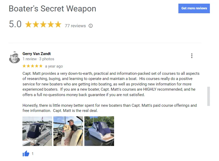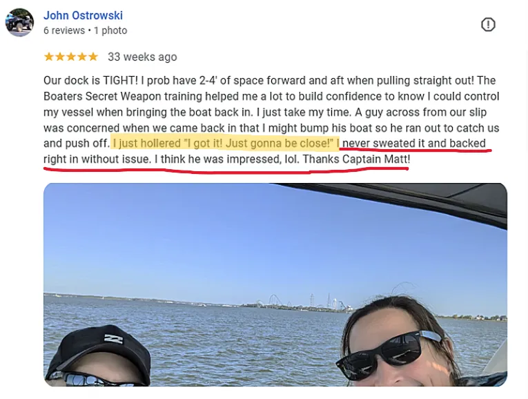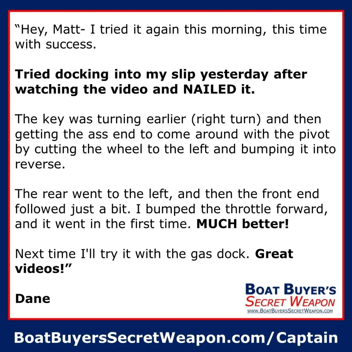 Yes, you can find some of this information on YouTube if you scour, scrub and search for it. However, it may not be on your style of boat, in the types of locations you boat and the info will not be as complete, as nuanced or in full context to be helpful. The Boater's Secret Weapon training programs are clear, concise, easy to follow and the fastest way to get total boat control, become a docking master and improve other boating skills to avoid the hassle, headaches and frustration of trying to figure it all out on your own.